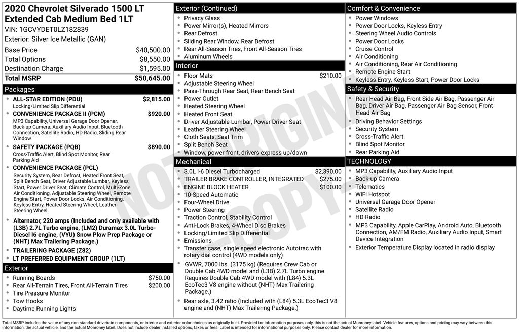 This 2020 Chevrolet Silverado 1500 LT is a rugged and capable pickup that's ready to handle any task you throw its way. Powered by a potent 3.0L I6 Duramax Diesel engine, this Silverado delivers an impressive 460 lb-ft of torque and 277 horsepower, providing the muscle you need for towing, hauling, and conquering challenging terrain. With its 4-wheel drive and 10-speed automatic transmission, this truck offers exceptional control and efficiency, earning an EPA-estimated 23 MPG in the city and 29 MPG on the highway.