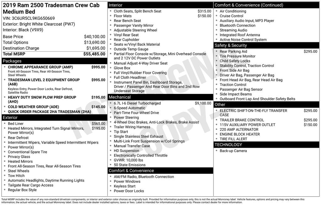This 2019 Ram 2500 Tradesman is the perfect blend of capability, convenience, and style, making it an exceptional choice for the hardworking professional. Experience the power and versatility of this truck for yourself. Contact us today at Flower Motor Company to schedule a test drive and discover how this Ram 2500 can transform the way you work.