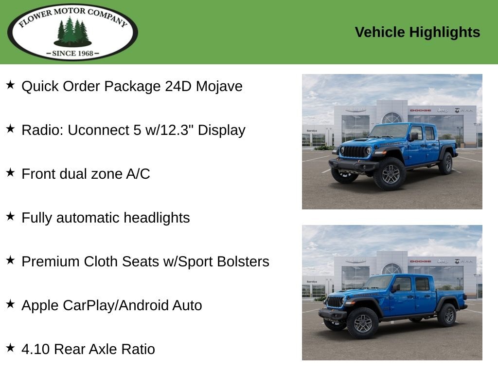 Whether you're conquering the trails, hauling gear, or simply enjoying the open road, the 2025 Jeep Gladiator Mojave is the perfect companion. With its impressive capabilities, distinctive style, and wealth of premium features, this Gladiator is sure to exceed your expectations and deliver an unparalleled driving experience.