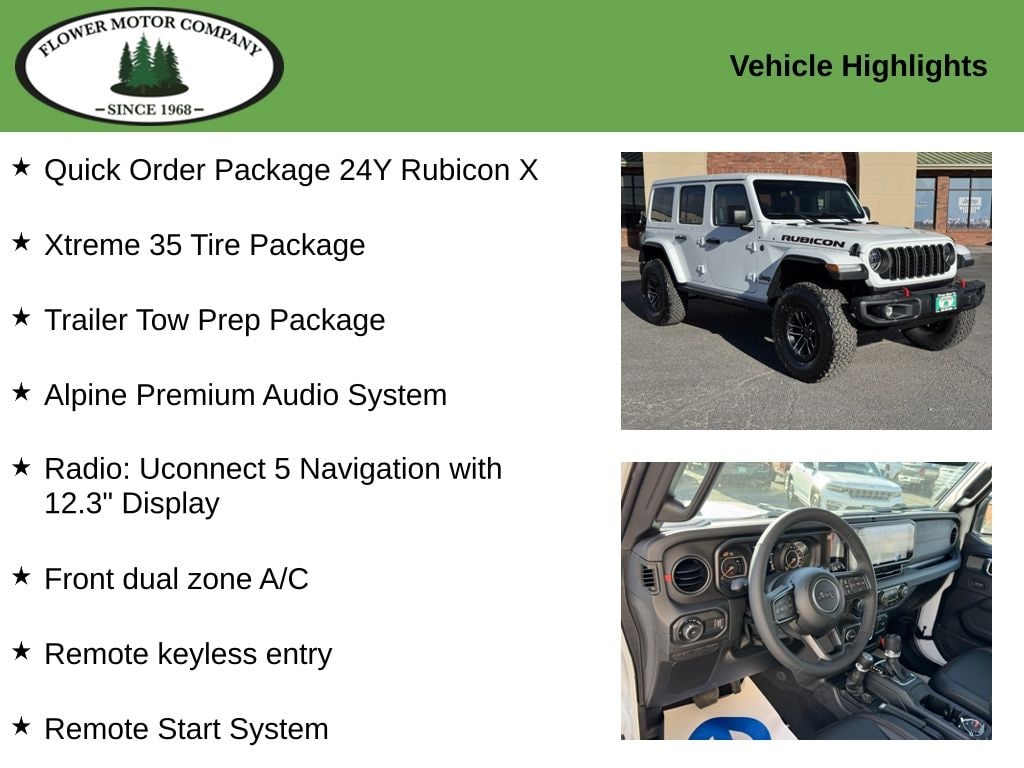 Adorned in a sleek White exterior, this Rubicon X model is equipped with a host of premium features that elevate the driving experience. Enjoy the convenience of heated front seats, a heated steering wheel, and dual-zone automatic climate control, all while surrounded by the premium Nappa leather upholstery. Stay connected with the advanced Uconnect 5 infotainment system, featuring a large 12.3-inch touchscreen display, Apple CarPlay, and Android Auto integration.