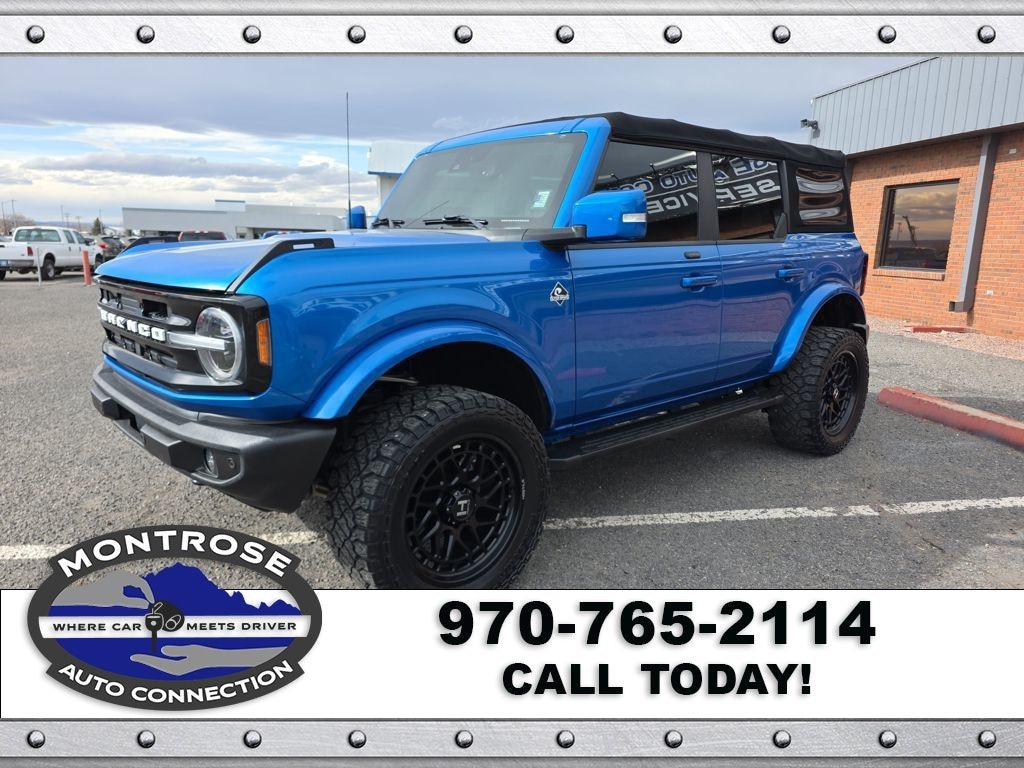 Bronco Outer Banks Advanced, 2.7L EcoBoost V6, 10-Speed Automatic, 4WD, Blue Metallic, Roast W/Black Onyx Leather, 12" LCD Capacitive Touchscreen w/Swipe Capability, 2 Smart Charging USB Ports In Dashboard, 360-Degree Camera, 4.27 Axle Ratio, Adaptive Cruise Control, Additional Sound Deadening, Connected Built-In Navigation, Equipment Group 314A Lux Package, Evasive Steering Assist, Forward Sensing System, Heated front seats, Heated Steering Wheel, Information on Demand Panel, LED Signature Lighting, Navigation system: Connected Navigation, Radio: B&O Sound System by Bang & Olufsen, Rear-View Camera, Sideview Mirrors, Towing Capability, Universal Garage Door Opener, Wireless Charging Pad.