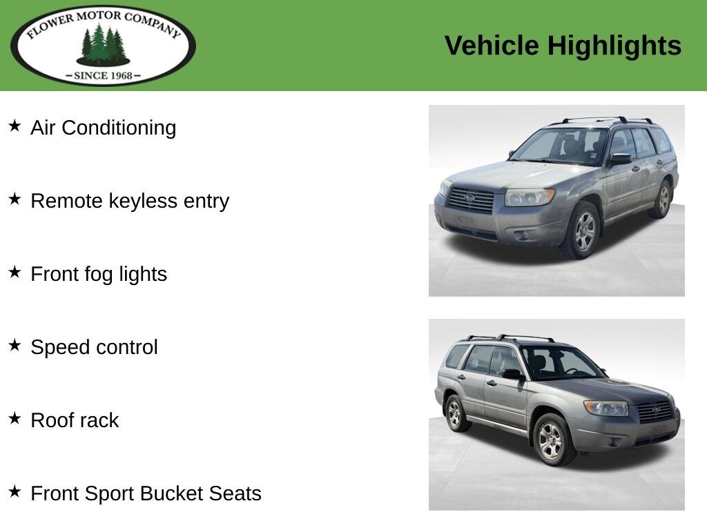 This 2006 Subaru Forester 2.5X offers a compelling blend of versatility, capability, and comfort. Equipped with Subaru's renowned Symmetrical All-Wheel Drive system, this Forester delivers confident handling and exceptional traction in a variety of driving conditions. Its 2.5-liter SOHC i-Active Valve Lift System engine provides a responsive and efficient performance, complemented by the vehicle's spacious interior and practical storage solutions.